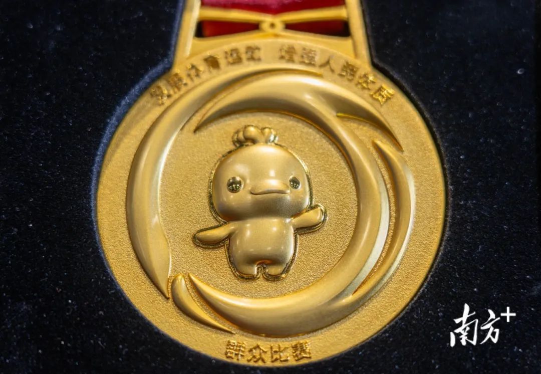 奖牌的边缘,三组水圆以独特的莫比乌斯环形态优雅呈现。“这三组水圆环绕中心的会徽,展示了粤港澳大湾区作为一个整体的融合态势与蓬勃活力。”